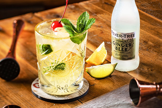 Martini Dry, Vodka, lime, Ginger beer, arancia e zucchero.